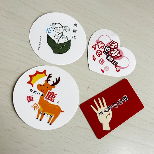 今までリリースした曲のジャケット写真をステッカーにしました! 各種300円 *ランダム商品です。 *柄はお選びいただけません。 *こちらの商品は送料込みのお値段となります。 ※購入の際の、「□利用規約に同意してPAY IDに登録」という項目ですが、こちらチェック外していただいて大丈夫です。 チェックをしないで購入すれば会員登録せずにご購入頂けます。